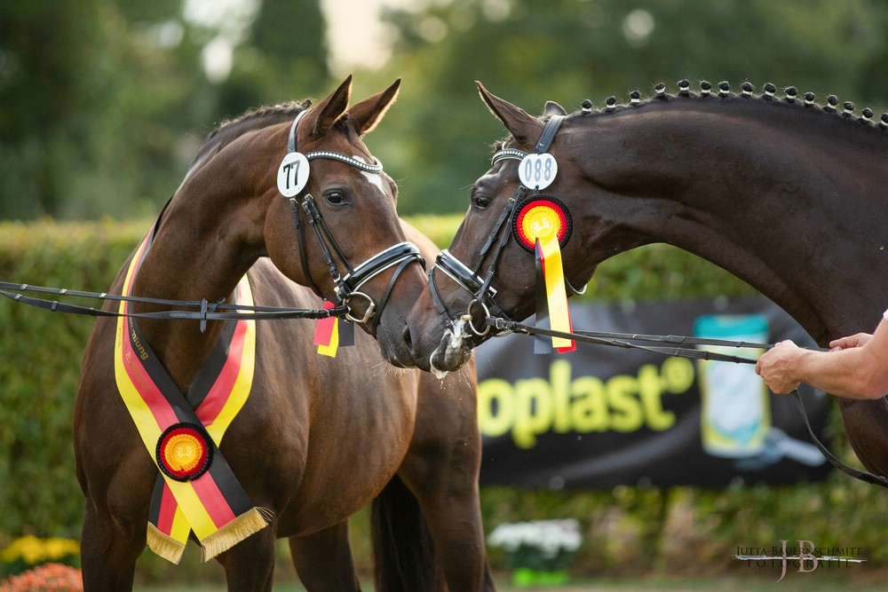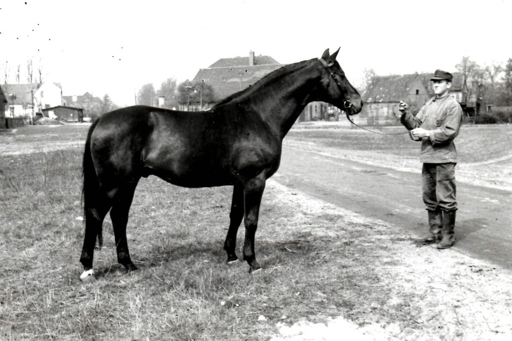 Die Leidenschaft und Faszination zum Trakehner Pferd liegt den Scharffetters einfach im Blut – die beiden Söhne von Franz, Hans-Joachim und Ernst-August, folgten den großen Fußstapfen des Vaters und des Großvaters. Ernst-August machte sich einen Namen als Ausbilder, Aufzüchter, Auktionsbeschicker, Privathengsthalter und Pferdefachmann. Die Liebe zu den Pferden und zur Landwirtschaft allgemein prägten auch den 1933 in Kallwischken geborenen Hans-Joachim, maßgeblich. Hans-Joachim hat die Flucht aus Ostpreußen als heranwachsender Junge mit allen Schrecken miterlebt. Als letzte Erinnerung an seine Heimat bleiben auch ihm nur die Trakehner Pferde. Nach einer landwirtschaftlichen Ausbildung wirkte Hans-Joachim zusammen mit seinem Vater Franz auf dem Pachtgut Groß Dunge, hier wurde ihm von seinem Vater das umfangreiche Wissen über die Trakehner Zucht und Pferdehaltung weitervermittelt. Seit 1961 ist Hans-Joachim Scharffetter als Landwirt in Schwanewede tätig, hier entwickelte er ab 1973 aus dem alten Lehrhof, dem ursprünglichen Betrieb der Familie seiner Ehefrau Marga, einen Vorzeigebetrieb mit dem Schwerpunkt Trakehner Pferdezucht. Er knüpfte dank der konstanten Unterstützung von Marga nahtlos an die züchterischen Erfolge seines Vaters an, der zu dieser Zeit selbst noch erfolgreicher Züchter war und brachte zahlreiche in Zucht und Sport erfolgreiche Trakehner Spitzenpferde hervor. Auch selbst leidenschaftlich gerne im Sattel unterwegs, feierte Hans-Joachim Scharffetter u.a. mit der Trakehner Stute Irene zahlreiche Erfolge im Springreiten. Besonders hervorzuheben ist seine beinahe vierzigjährige Tätigkeit als Trakehner Körkommissar von 1967 bis 2004 sowie seine mehrere Jahrzehnte umfassende ehrenamtliche Engagement beim Trakehner Verband. Neben zahlreichen Auszeichnungen für sein züchterisches Schaffen wurde Hans-Joachim dafür mit der höchsten Auszeichnung des Trakehner Verbandes, der goldenen Ehrennadel mit Brillanten, geehrt. 2023 feierte Hans-Joachim Scharffetter seinen 90. Geburtstag – die Faszination und Leidenschaft für das Trakehner Pferd sind bis heute ungebrochen.